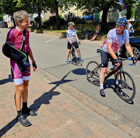 Christoph Fuhrbach ist wieder zurück in Kallstadt und feuert die Radfahrerinnen und Radfahrer an, die für ihn den Weltrekord radeln wollen. © Misereor