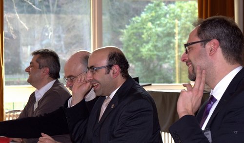 Teilnehmer der ACK-Konferenz (v. l): Ökumenereferent Dr. Thomas Stubenrauch (Bistum Speyer), Superintendent Horst Hörpel (Evangelische Kirche im Rheinland), Dr. Bishoy Soliman (Vertreter der koptisch-orthodoxen Kirche), Pastor Dr. Jochen Wagner (Bund Freier Evangelischer Gemeinden, Vorsitzender der ACK-Südwest).