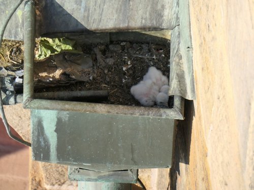 Speyer. Groß war die Enttäuschung, als klar war, dass in diesem Jahr keine Uhus am Dom brüten würden. Dafür hat sich jetzt Nachwuchs bei den Turmfalken eingestellt. Zu dem traditionellen, kaum einsehbaren Platz an einem der Fenster der Sakristei, hat ein weiteres Brutpaar nun etwas eigenwillig eine Regenrinne als Ort für sein Gelege gewählt. Dank des Gerüstes an den Osttürmen ist dieser Platz gut einsehbar. Entdeckt wurden die Eier von Dombaumeisterin Hedwig Drabik, die seither auf dem Weg nach oben regelmäßig nach dem Rechten sieht. Mit dem Baulärm scheinen die Tiere sich ebenso arrangieren zu können wie mit der doch sehr exponierten Lage des Nestes. Aus zwei von vier Eiern sind vor wenigen Tagen Küken geschlüpft. Wenn alles gut geht, werden diese in zwei bis drei Wochen flügge.