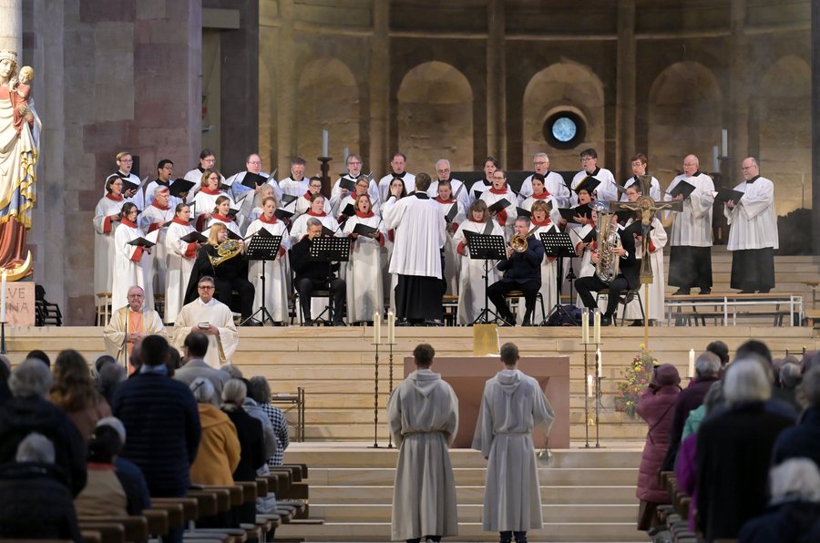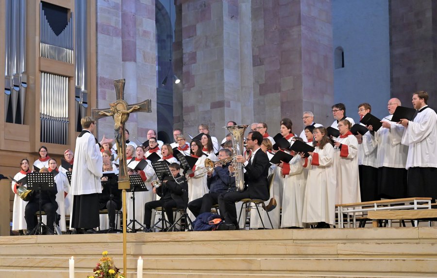 Speyer. Zum Hochfest Allerheiligen feierte Weihbischof Otto Georgens am Freitag, 1. November, im Speyerer Dom ein Pontifikalamt. Musikalisch gestaltet wurde der Gottesdienst vom Domchor und den Dombläsern mit der Missa „Te deum laudamus“ von Wolfram Menschick und Musik von Luis de Victoria und Gregorianik. Die Orgel spielte Domorganist Markus Eichenlaub.