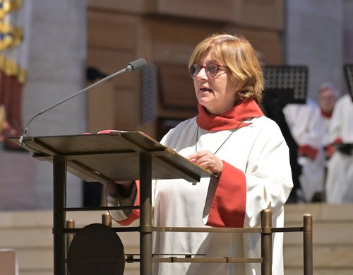 In seiner Predigt konzentrierte sich Weihbischof Georgens auf die Seligpreisungen Jesus. „Es sind die Seligpreisungen, diese beglückenden und zugleich provokanten Grundsätze für eine Zivilisation der Liebe.“ Sie behandeln Themen wie Armut, Gewaltverzicht oder Solidarität. Mit diesen starken Aussagen habe Jesus eine „seelische und mentale Neuprogrammierung“ der Menschen versucht. Durch die vielen weltweiten Eskalationen seien diese „scheinbar naiven Seligpreisungen“ gerade in der heutigen Zeit überlebensnotwendige Gegen-Aussagen. „Selig, wer sich von Ihnen neu ‚Programmieren‘ lässt“, wandte sich der Weihbischof an die Gläubigen.