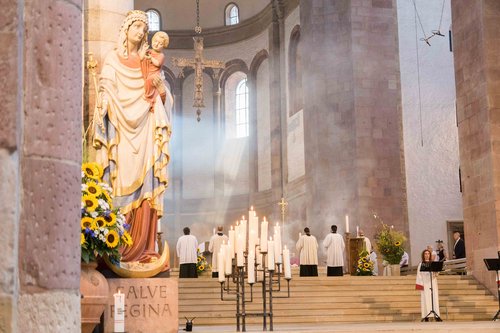 Speyer. Ein besonderer Tag für den Speyerer Dom und das Bistum Speyer ist das Fest Mariä Himmelfahrt am 15. August: dann wird das Patrozinium und Hauptwallfahrtsfest des Speyerer Doms gefeiert. Bischof Dr. Karl-Heinz Wiesemann zelebrierte heute Vormittag gemeinsam mit Vertretern des Domkapitels das Pontifikalamt zum Fest.