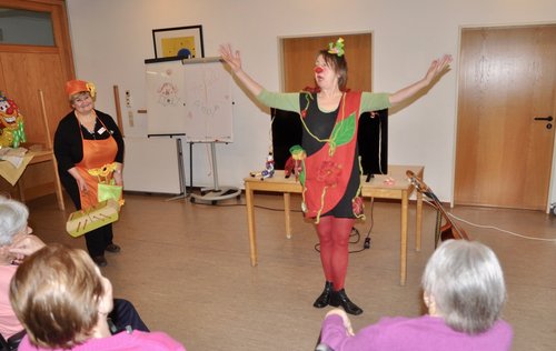 Speyer. „Lebensfreude nicht vergessen“ ist das Motto des Nachtcafés. Das passt an diesem Abend besonders gut: Clownin Lakritze kommt vorbei. Auf ihrem Kopf sitzt ein kleiner grüner Frosch. „Hallooo! Ich bin Lakritze und das ist Popcorn“, sagt sie und deutet auf den Frosch. Die rote Nase und rote Wangen sehen lustig aus. Und sie lacht viel – und das wirkt schnell ansteckend. „Die Emotionen bleiben den Menschen mit Demenz“, sagt Gudrun Wolter, die Leiterin des Altenzentrums, „deshalb ist es wichtig, ihnen positive Gefühle zu vermitteln.“