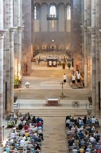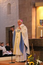 Speyer. Mariä Himmelfahrt ist für die Diözese und den Dom zu Speyer ein ganz besonderer Tag. Alljährlich begehen die Gläubigen das Patronatsfest von Bistum und Kathedrale mit einer Reihe verschiedener Gottesdienste zur Feier der Aufnahme Marias in den Himmel. Auch in diesem Jahr feierte Bischof Dr. Karl-Heinz Wiesemann um 10 Uhr ein festliches Pontifikalamt. Er begrüßte insbesondere die 75 Pilgerinnen und Pilger, die in der Nacht vom Annaberg bei Burrweiler zum Speyerer Dom gepilgert waren sowie eine Gruppe von Gehörlosen für die der Gottesdienst in Gebärdensprache gedolmetscht wurde. Als weiteren besonderen Gast hieß Bischof Wiesemann Salvatore Pennacchio, Erzbischof und Diplomat des Heiligen Stuhls, willkommen, der derzeit im Bistum Speyer seine Ferien verbringt und das Hochfest Mariä Himmellfahrt im Dom als Konzelebrant mitfeierte.