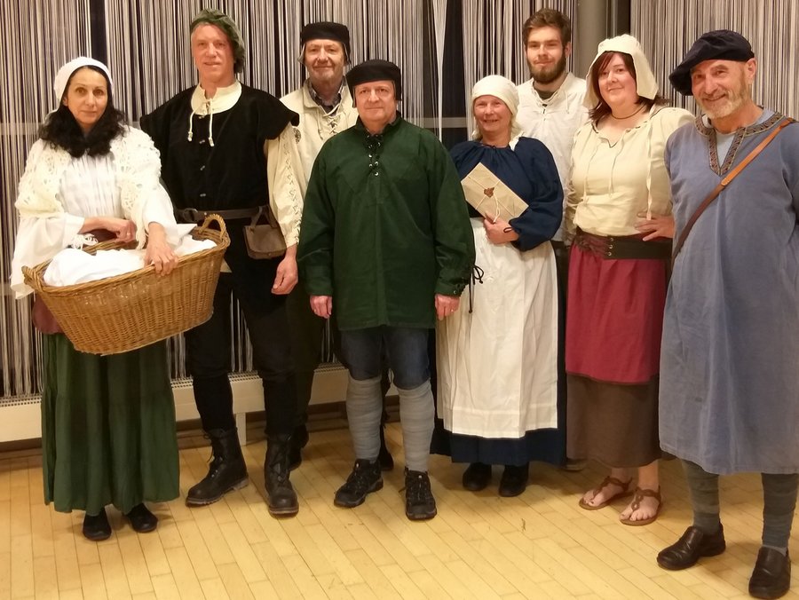 Darstellende der Szene „Luthers Bibel-Übersetzung auf der Wartburg“ in ihren historischen Gewändern.