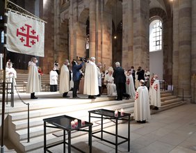 Der Münchner Kardinal Reinhard Marx hat am Wochenende 10 Frauen und 13 Männer in den Ritterorden vom Heiligen Grab zu Jerusalem aufgenommen. In einem feierlichen Gottesdienst im Speyerer Dom, den Marx als Großprior des deutschen Ordenszweigs leitete, erhielten die neuen Grabesritter Ordenskreuz und Mantel, die Männer zusätzlich einen Ritterschlag. Wegen der Corona-Vorgaben durften nur rund 100 Menschen an dem Gottesdienst teilnehmen. Ursprünglich waren etwa 700 Personen erwartet worden.