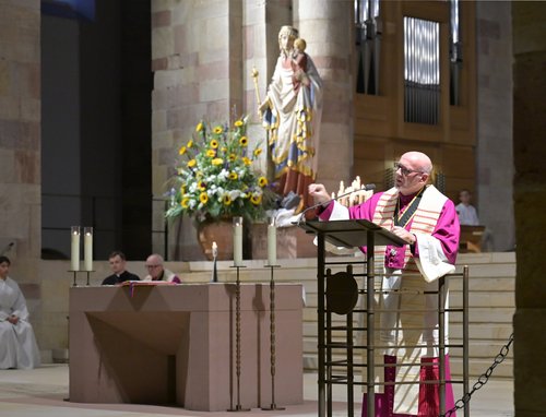 Speyer. „Mit Maria ist für unser Glaube und für unser Glaubenszeugnis ein großes Hoffnungszeichen mitgegeben. In allen Fragen, in allen Zweifeln, in allen Krisen“, sagte Generalvikar Markus Magin bei seiner Predigt in der Marienfeier am Abend des Festes Mariä Himmelfahrt im Dom zu Speyer.