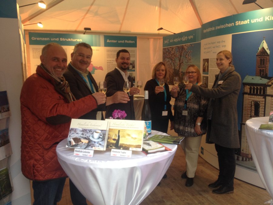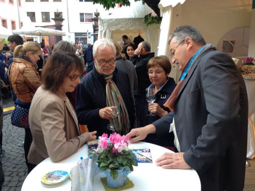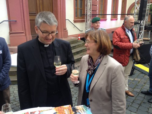 Ausstellung zu "200 Jahre Neugründung des Bistums Speyer" im Hof des Bischöflichen Ordinariats - Begegnungen bei einem Glas Pfälzer Riesling