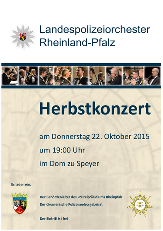 Zu dem Konzert laden der Behördenleiter des Polizeipräsidiums Rheinpfalz und der ökumenische Polizeiseelsorgebeirat des Bistums Speyer und der Evangelischen Kirche der Pfalz ein.