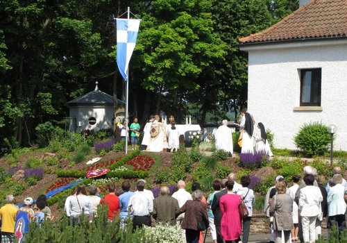 Am Fronleichnamsfest, das an dem Wallfahrtsort eine lange Tradition hat, wird das eucharistische Brot, die Hostie, in einer Monstranz durch die Wallfahrtsanlagen getragen. Damit kommt zum Ausdruck, dass Jesus Christus in seiner Kirche anwesend ist, mit ihr als dem Volk Gottes unterwegs und für alle Menschen da sein will. Auf dem Rosenberg wird an vier Stationen, auf der Waldwiese, an der Lourdesgrotte, am Blumenhang sowie im Wallfahrtshof der Segen gespendet.