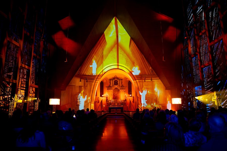 Leimersheim. Vom 9. bis 11. Mai 2025 wurde die Leimersheimer Kirche St. Gertrud wieder in ein besonderes Licht getaucht: Mit über 30 Scheinwerfern und mehreren Hochleistungsbeamern erzählten die Messdiener mit aufwändigen Animationen die Geschichte des auferstandenen Jesus: Angefangen von der Kreuzigung über das leere Grab bis hin zur Himmelfahrt und Pfingsten.