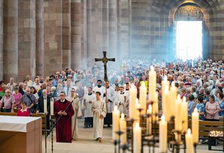 Speyer. Am Dom gehört das Hochfest der Aufnahme Mariens in den Himmel zu den Höhepunkten des Jahres, denn am 15. August wird das Patronatsfest der Kathedrale und des Bistums gefeiert. Zum Hochfest feiert Bischof Dr. Karl-Heinz Wiesemann um 10 Uhr ein Pontifikalamt. Mit ihm zusammen wird auch eine Pilgergruppe einziehen, die am Abend zuvor von der Annakapelle in Burrweiler aufgebrochen ist und die Nacht über zum Dom pilgert. Die Capella Spirensis gestaltet diesen feierlichen Gottesdienst musikalisch mit der Missa „Vidi speciosam“ von Tomas Luis de Victoria, Gregorianik und Liedsätzen von Rommelspacher und Melchiori. Die Orgel spielt Domorganist Markus Eichenlaub.