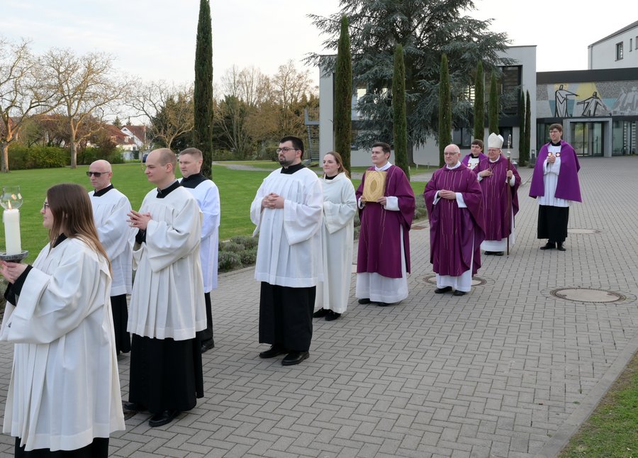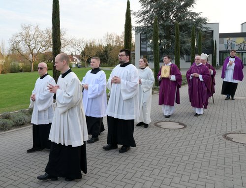Speyer. Weihbischof Otto Georgens hat am 22. März im Rahmen eines Gottesdienstes in der Kirche des Priesterseminars in Speyer zwei Priesteramtskandidaten, zwei Männern aus dem Bewerberkreis der Ständigen Diakone sowie einer Kandidatin aus dem Bewerberkreis der Pastoralreferenten die Beauftragung für den Akolythen- und Lektorendienst erteilt.
