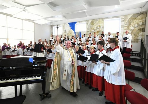 Speyer. In zwei Jahren wurde aus einer ehemaligen Schulturnhalle der neue Proben- und Konzertraum der Dommusik. Jetzt wurde der neue Große Chorsaal beim Haus der Kirchenmusik, Hasenpfuhlstraße 33b, eingeweiht. Domkapellmeister Markus Melchiori freut sich über die Fertigstellung des „Herzstücks der Dommusik". Rund 350 Kinder, Jugendliche und Erwachsene werden dort künftig proben. Gefeiert wurde die Einweihung am 1. September mit einer Pontifikalvesper im Dom mit Weihbischof und Dompropst Otto Georgens.
