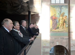 Rundgang durch den Dom (v.l.n.r.) Werner Schineller Vorstandsmitglied und Oberbürgermeister der Stadt Speyer a.D., Elisabeth in Bayern, Kurt Beck, Vorsitzender des Kuratoriums, Großherzog Henri von Luxemburg, Erbgroßherzog Guillaume von Luxemburg, Domdekan und Domkustos Dr. Christoph Kohl, Dr. Georg Gölter, Vorstandsmitglied und Minister a.D.