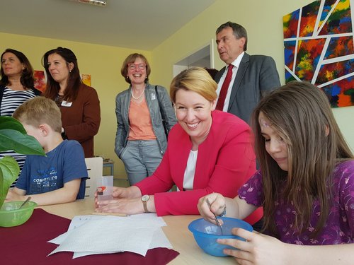 Der Besuch der Bundesfamilienministerin zur offiziellen Eröffnung unterstreicht die Bedeutung und den einmaligen Charakter des Familienhilfezentrums. „Ich kann Sie zu Ihrem neuen Familienhilfezentrum nur beglückwünschen: Ein Haus, das in fast jeder Lebenslage Menschen, die Hilfe brauchen, und Menschen, die Hilfe geben, zusammenbringt, ist etwas ganz Besonderes. Es zeigt, dass eine gute Entwicklung möglich ist, wenn viele gemeinsam daran arbeiten – zum Wohle der Familien. Vor allem die Kooperation von öffentlicher Hand und freien Trägern Hand in Hand an einem Ort ist modellhaft und verspricht Erfolg. Das ist beispielgebend für Deutschland“, sagt die Bundesfamilienministerin Dr. Franziska Giffey.