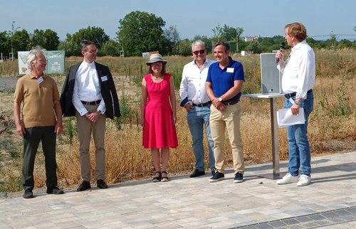 Bei den Baustellenführungen erläuterten die Projektverantwortlichen die Baufortschritte auf dem rund 15 Hektar großen Gebiet: So sind die Erschließungsarbeiten abgeschlossen, Leitungen und Kabel verlegt und alle Straßen bereits gepflastert. Ende März wurden 62 Straßenbäume gepflanzt.
