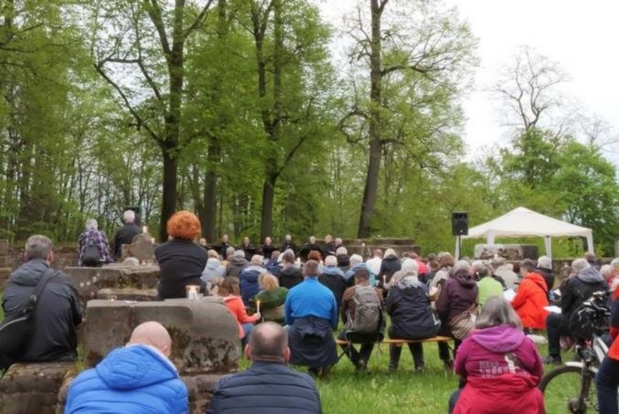 Trotz der unsicheren Wettervorhersagen – Petrus hatte die Gebete der ProtagonistInnen erhört – hatten viele Gläubige den Weg auf den Klosterberg gefunden und waren begeistert. „Es war so klasse“, so die Reaktion einer Besucherin. Auch die Veranstaltungen vor dem eigentlichen Abendlob, Wanderung, Achtsamkeitsübung und eine Führung über das Klostergelände, konnten genauso überzeugen wie die Verköstigung durch den Förderverein der Klosterruine Wörschweiler.
