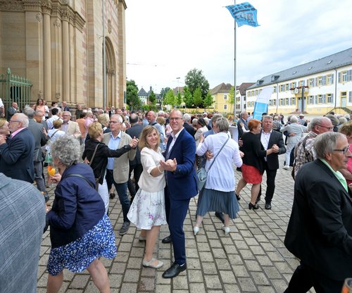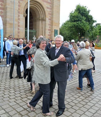 Im Anschluss an die Einzelsegnungen wurden alle Ehepaare zu einer Begegnung in die Domvorhalle und den Domgarten eingeladen und beendeten den Festtag mit einem Tanz rund um den Domnapf. Dazu erklang Livemusik von Walter Ast (Speyer) am Keyboard und Lothar Sprengart (Dudenhofen) an der Trompete.