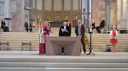 Speyer. „Wir sind überzeugt, dass wir auf die Herausforderungen unserer Zeit nur gemeinsam Antworten geben und Lösungen finden können“: Diese Haltung haben Kirchenpräsident Christian Schad und Bischof Karl-Heinz Wiesemann bei der ökumenischen Pfingstvesper am Pfingstsonntag im Dom zu Speyer bekräftigt.