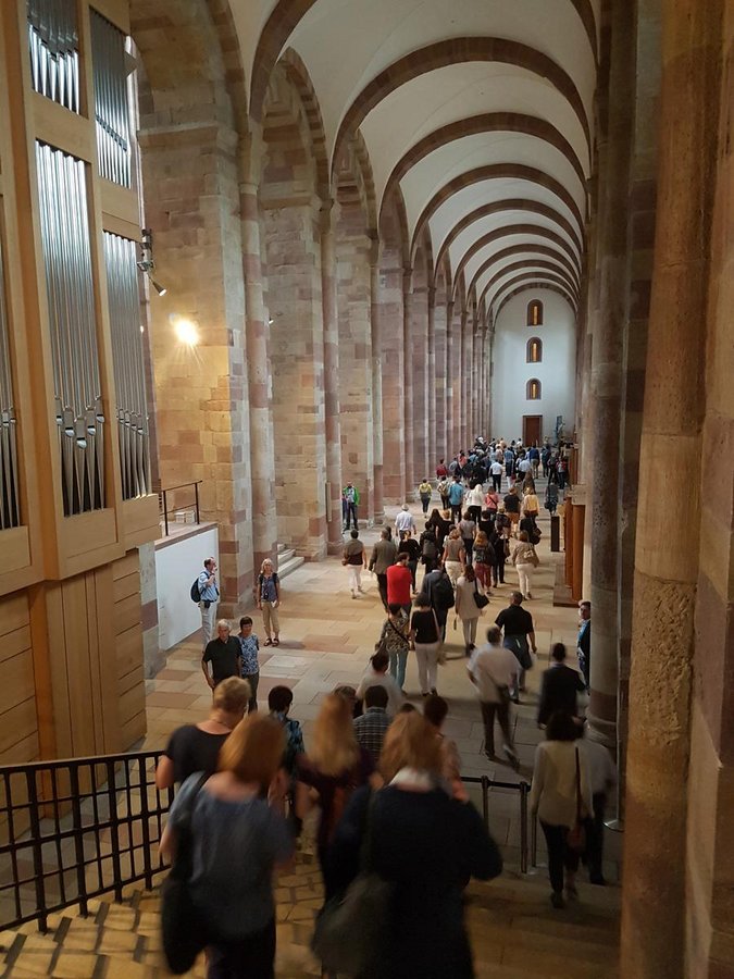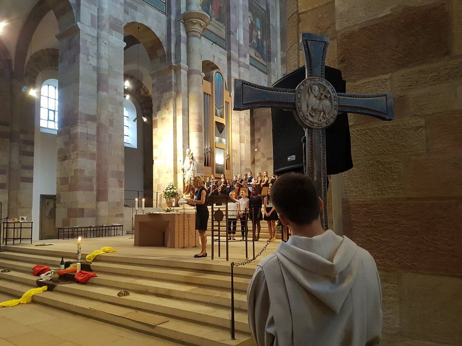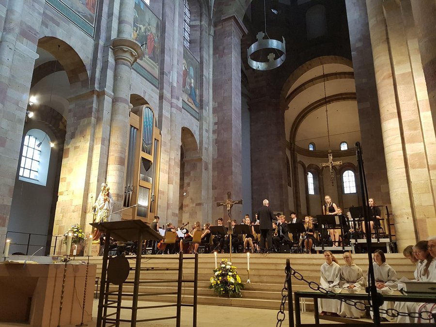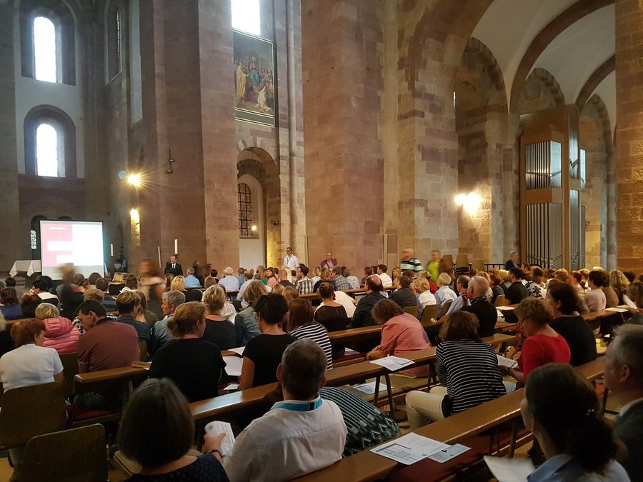 Speyer. Am 24. August versammelten sich rund 250 Religionslehrerinnen und Religionslehrer in Speyer. Sie folgten der Einladung von Bischof Dr. Karl-Heinz Wiesemann, sich einen Tag lang zum Thema „Was ist guter Unterricht? Was ist guter Religionsunterricht?“ auszutauschen. Domdekan Dr. Christoph Kohl, Leiter der Hauptabteilung Schulen, Hochschulen und Bildung, begrüßte die Religionslehrenden als „wichtige Mitarbeiter des Bistums“ im Dom zu Speyer. Auch Bischof Wiesemann zeigte sich dankbar über die geleistete Arbeit und betonte die Gemeinschaft, die die Lehrenden und das Bistum bildeten: „Ihr seid nicht allein, selbst wenn es manchmal schwierig ist und man sich wie ein Einzelkämpfer vorkommt!“ Im Pontifikalamt illustrierte das Alfred-Grosser-Gymansium aus Bad Bergzabern die enge Beziehung musikalisch. Chor, Orchester und Jazz-Combo beschwingten den Gottesdienst, beispielsweise mit Stücken von Haydn oder Duke Ellington und beschlossen die Messe mit „Freude, schöner Götterfunken“.