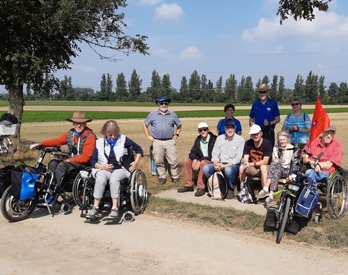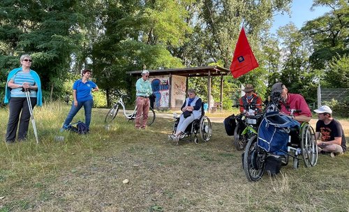 Ein Stück auf dem Jakobspilgerweg von Frankenthal nach Bobenheim-Roxheim war eine Gruppe von Menschen mit und ohne Handicap unterwegs.