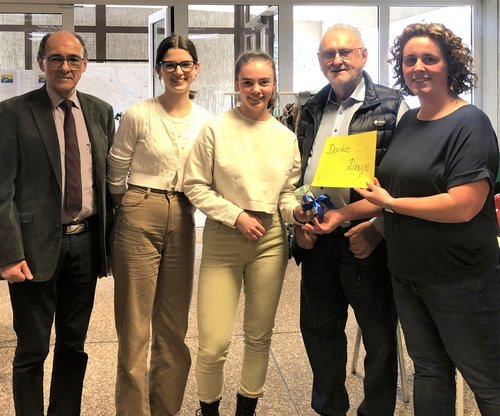 „Bei der Aktion 2022 wurden 800 Stückverteilt und der Erlös waren genau 304,07 Euro“, ergänzt Annabell Hack. „Wir suchen uns dann immer ein aktuelles Thema oder Projekt aus, an das die Spende gehen soll. Im vergangenen Jahr war das eine Schule im Ahrtal, die von der Flut betroffen war.“ In diesem Jahr habe die Schülervertretung das Geld für Betroffene des Kriegs in der Ukraine spenden wollen. „Wir finden es toll, dass wir unsere Spende hier direkt an das Begegnungscafé geben können und sehen können, was damit gemacht wird.“