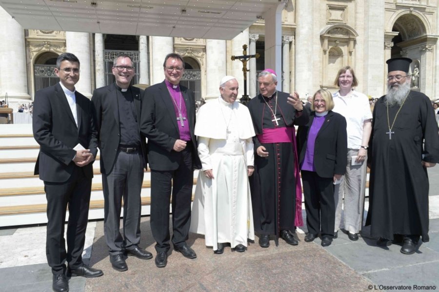 Rom. Das Reformationsjahr ist eine Chance für die Ökumene, davon ist der Vorstand der Arbeitsgemeinschaft Christlicher Kirchen in Deutschland überzeugt. In ihren Bemühungen bestärkte auch Papst Franziskus die ACK in Deutschland. Während eines Besuchs in Rom in der vergangenen Woche hatte der Vorstand mit Bischof Dr. Karl-Heinz Wiesemann (Speyer), Vorsitzender der ACK in Deutschland, dem Papst von den Aktivitäten der ACK zum Reformationsjahr berichtet. In Rom begegnete der Vorstand auch Mitgliedern der Waldenserfakultät, dem Repräsentanten der Anglikanischen Kirche in Rom und Kurt Kardinal Koch, dem Präsidenten des Päpstlichen Rates zur Förderung der Einheit der Christen.