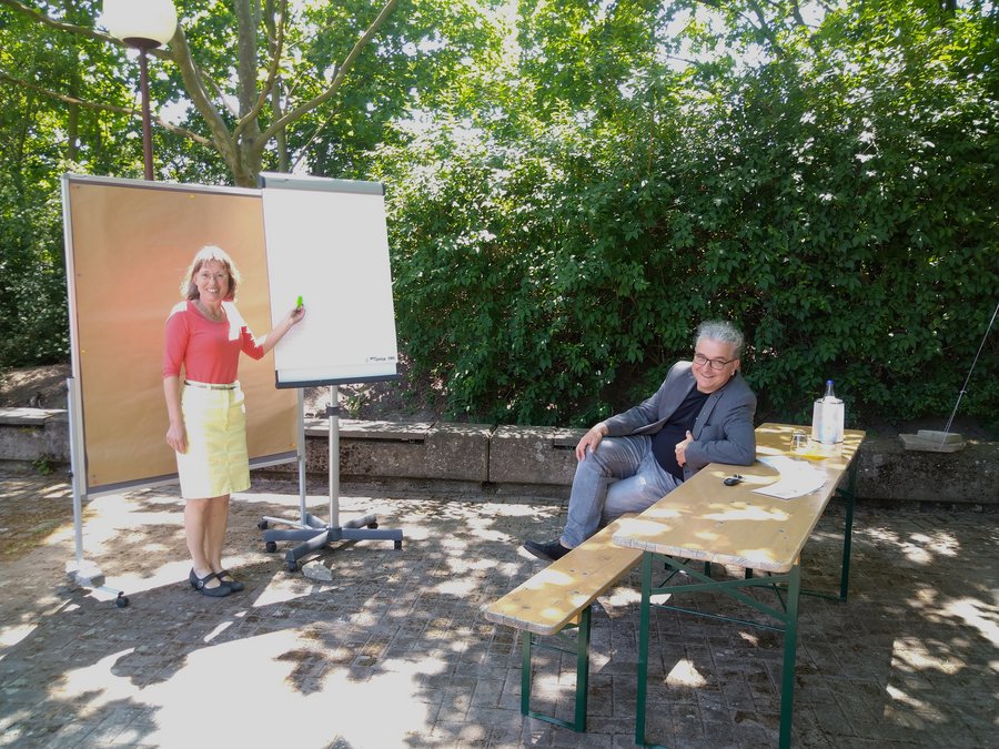 Ulrike Gentner, stellvertretende Direktorin, und Pater Tobias Zimmermann SJ, Direktor des Heinrich Pesch Hauses, laden ein zum "Green Meeting".