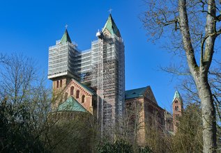 Speyer. Wer derzeit zum Speyerer Dom kommt, kann schnell erkennen, dass hier einiges für den Bauerhalt getan wird. Zu sehen ist das an den Gerüsten, die derzeit an den Osttürmen, in der Vorhalle und am Ölberg stehen. „Gerüste sehen zwar nicht schön aus, sind aber eigentlich ein gutes Zeichen“, sagte Domdekan und Domkustos Dr. Christoph Kohl. „Gerüste sagen: Hier kümmert sich jemand um den Bau.“ Wie genau das Kümmern aussieht und warum vieles auch erst geplant werden kann, wenn das Gerüst schon steht, erläuterte Dombaumeisterin Hedwig Drabik. Sie gab in einem Mediengespräch Einblick in die Arbeiten der zurückliegenden Monate.