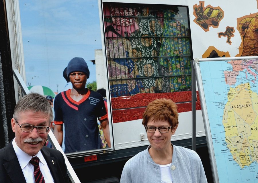 „Wir alle sind oft leichtfertig mit unserem Urteil und haben keine Vorstellung von den Lebensumständen in den Herkunftsländern der Flüchtlinge“, befand Kramp-Karrenbauer. Das möchte der missio-Truck mit seiner Ausstellung verändern.