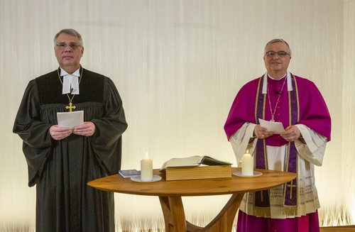 Speyer. Mit ökumenischen Gottesdiensten im Evangelischen Krankenhaus in Bad Dürkheim und im Caritas-Altenzentrum St. Hedwig in Kaiserslautern am 24. Dezember bringen Bischof Karl-Heinz Wiesemann und Kirchenpräsident Christian Schad die besondere Verbundenheit der Kirchen mit alten und kranken Menschen in der Corona-Pandemie zum Ausdruck. „Der Besuch soll zeichenhaft deutlich machen, dass die Weihnachtsbotschaft gerade denen gilt, die unter der gegenwärtigen Situation besonders leiden“, erklären das Bistum Speyer und die Evangelische Kirche der Pfalz.