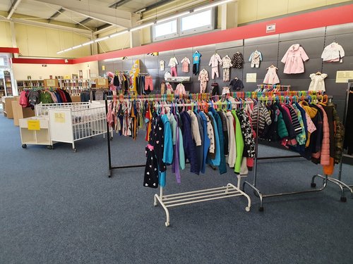 „An einem normalen Tag haben wir im Schnitt 250 Kunden“, berichtet Helga Siegel, die Marktleiterin. „Aber wir haben schon damit gerechnet, dass es heute viel Interesse geben wird.“ Kurz vor der Öffnung der Eingangstür war das noch leere Geschäft zu bestaunen. Der Markt ist hell und luftig, alle Regale, Tische und Kleiderständer sind üppig bestückt mit Ware. Die Sachen sind mit viel Liebe zum Detail eingeräumt und ansprechend dekoriert nach Farbe und nach Größe. Es ist deutlich zu sehen, dass die MitarbeiterInnen das mit viel Geschmack und Ordnungssinn eingeräumt haben. „Das drückt auch unsere Wertschätzung für unsere Kunden aus. Sie sollen einen schönen Markt vorfinden, in dem sie ein gutes Einkaufserlebnis haben“, sagt Siegel.