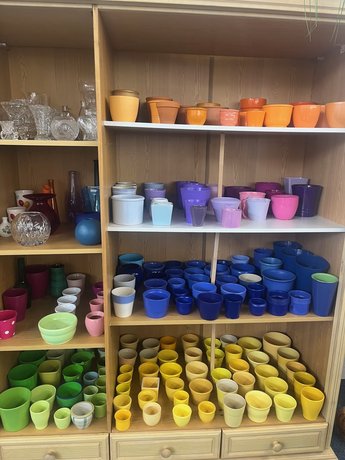 Schon vor der Öffnung der Eingangstür hat sich draußen auf dem Parkplatz bereits eine große Menschentraube eingefunden. Um Punkt 10 Uhr öffnet Helga Siegel die Tür und die Kunden strömen herein. Sie schnappen sich einen Einkaufswagen und beginnen mit ihrer Einkaufstour. „Es gibt hier fast alles, was man braucht“, sagt eine Kundin. „Kleider, Haushaltswaren, Spielzeug, Bücher, Dekorationssachen, Geschirr, Bilder, Bürosachen. Wenn ich was brauche, gehe ich immer zuerst hierher.“ Ihr Einkaufswagen ist schon komplett gefüllt. „Ich habe drei Kinder und fünf Enkel, da braucht immer jemand was und hier gibt es alles für wenig Geld“, freut sie sich und wendet sich schon dem nächsten Regal zu.