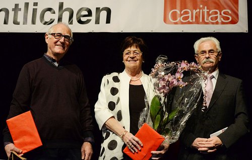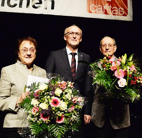 Für ihr besonderes und langjähriges Engagement wurden die zwei Ehrenamtlichen Ruth Quell aus Lachen-Speyerdorf und Eugen Kocher aus Edesheim von Caritas-Direktor Vinzenz du Bellier mit der goldenen Ehrennadel der Caritas geehrt. Ruth Quell ist in der Caritasarbeit ihrer Pfarrei und im Lichtblick, einer Tagesbegegnungsstätte für Wohnungslose in Neustadt engagiert. Eugen Kocher arbeitet ehrenamtlich als Hospizbegleiter und in vielfältigen Ehrenämtern seiner Pfarrei.