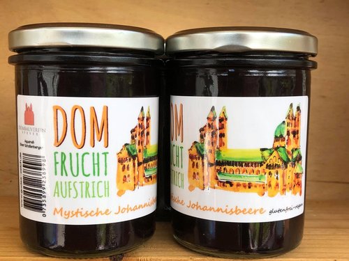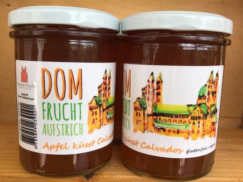 Auf den Etiketten der Gläser mit den Fruchtaufstrichen befindet sich ein Aquarell mit Dommotiv des Künstlers Oliver Schollenberger aus Dudenhofen.