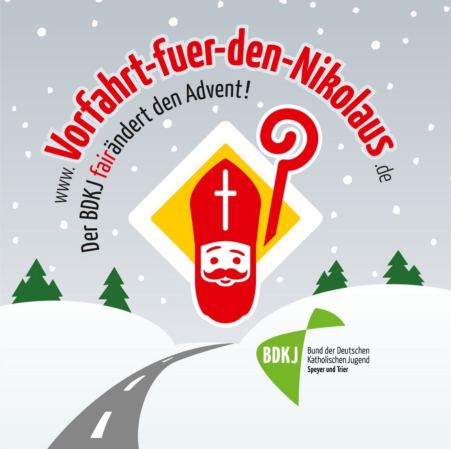 Der berühmte Bischof von Myra sorgte sich um Kinder und Arme in seiner Stadt und veränderte mit seinen Geschenken deren Leben. Die fair-gehandelten Schoko-Nikoläuse, die in Kooperation mit dem St.-Benno-Verlag angeboten werden, tragen deshalb auch Mitra und Bischofsstab statt Zipfelmütze und Rauschebart. Auf der Homepage www.vorfahrt-fuer-den-nikolaus.de stellen die BDKJ-Diözesanverbände Projektideen zur Umsetzung für die Gruppenstunde, Schule und bereit. Diese thematisieren unter anderem den Unterschied von Heiligem Nikolaus zur populären Kunstfigur des Weihnachtsmannes, wie auch das eigene Konsumverhalten.
