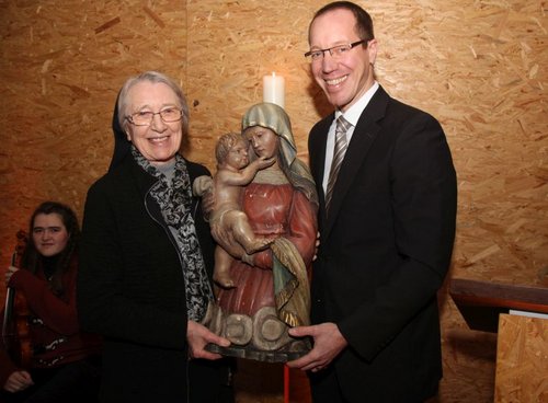 Am Ende der Andacht wurde die Kapelle nach einer kurzen Ansprache von Domkapitular Franz Vogelgesang profaniert. Joachim Lauer übergab die Marienstatue, eine Dauerleihgabe der Niederbronner Schwestern an Schwester Maria Sigrid Burkhard. Die Ehrenamtlichen bekamen zum Andenken einen Kerzenständer aus der Kerzenwand, an der die Besucher des Lichtpunktes in den letzten Jahren ein Licht anzünden konnten.