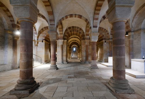 Der Dom steht täglich zum persönlichen Gebet und zur Besinnung offen. Krypta und Kaisergräber waren seit dem 2. November geschlossen. Für den Besuch dieses Bereichs wird eine Eintrittsgebühr erhoben, mit der die Besucher den Bauerhalt des Doms unterstützen. Die Krypta ist der älteste Teil des Doms und gehört zu den größten Unterkirchen der Welt. Die strenge geometrische Gliederung bei gleichzeitiger Schlichtheit der Bauformen verleihen ihr eine besondere Aura. Durch einen im 20. Jahrhundert angelegten Zugang gelangt man von der Krypta aus zu den Gräbern der salischen Kaiserdynastie sowie weiterer bedeutender Herrscher des Mittelalters.