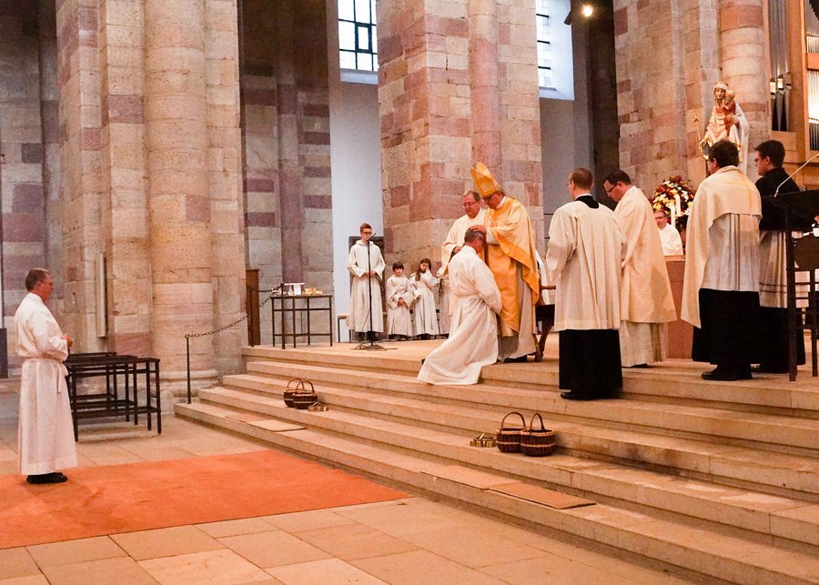 Speyer. "Es ist eine besondere Freude für die Diözese Speyer, dass sie zwei gestandene Männer zu Diakonen weihen darf." Mit diesen Worten leitete Bischof Dr. Karl-Heinz Wiesemann am Samstag die Feier der Diakonweihe im Speyerer Dom ein. Er spendete Wolfgang Rhein aus der Pfarrei Hl. Franz Xaver, Lauterecken (Gemeinde St. Franz Xaver, Lauterecken) und Rudolf Schwarz aus der Pfarrei Hl. Cyriakus, Thaleischweiler-Fröschen (Gemeinde St. Antonius, Maßweiler), das Sakrament der Diakonweihe. Beide werden als Ständige Diakone in ihren Heimatpfarreien tätig sein.