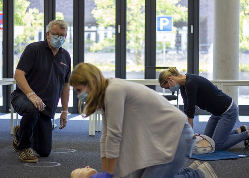 Das Kurskonzept ist dabei inhaltlich weitgehend unverändert. „In den Kursen ist es nun mal wichtig, eine stabile Seitenlage, eine Herz-Lungen-Wiederbelebung oder der Einsatz eines Defibrillators zu üben“, so Sauer. „Um den Infektionsschutz der Kursteilnehmer sicher zu stellen, wird bei praktischen Übungen der direkte Körperkontakt vermieden und die Übungen vermehrt an Übungsphantomen durchgeführt. Alle Übungsmaterialien werden umfassend desinfiziert. Jeder, der zu unseren Kursen kommt, kann sich sicher fühlen. Und jeder, der unseren Kurs verlässt ist sicher in Erster Hilfe“, sagt Sauer.