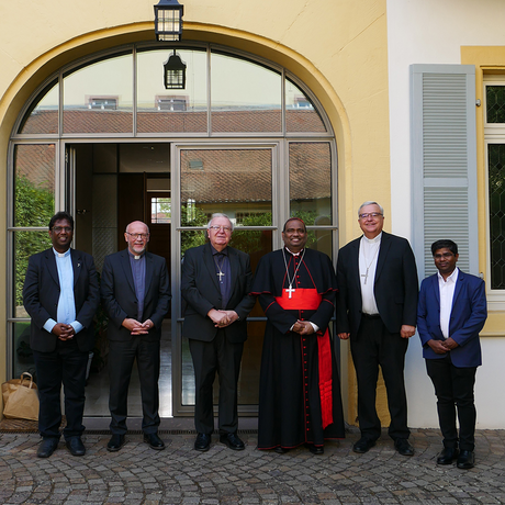 v.l.n.r.: Pfarrer Kiran Kanapala, Generakvikar Markus Magin, Weihbischof Otto Georgens, Kardinal Anthony Poola, Bischof Karl-Heinz Wiesemann und Kaplan Raveendra Mundlapati