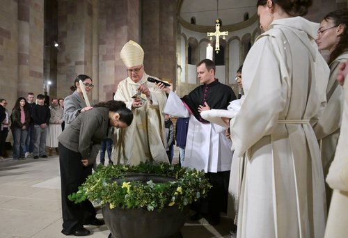 Osternacht im Speyerer Dom mit knapp 1.000 Gläubigen – Bischof Wiesemann taufte sechs Erwachsene – Der Speyerer Bischof forderte die jungen Erwachsenen auf, „Geschichten, in denen das Leben stärker ist, als der Tod“ zu erzählen