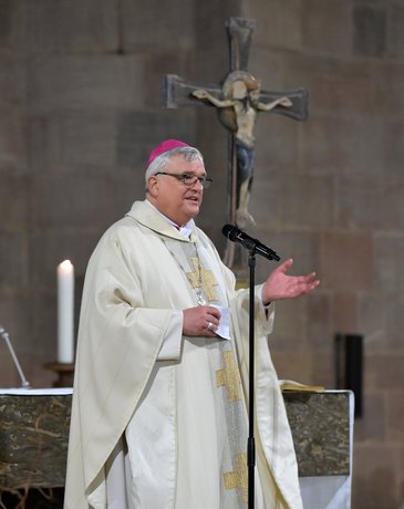 In seiner Predigt nahm Bischof Wiesemann Bezug auf die sechs Erwachsenentaufen, die im Laufe der Osternacht vollzogen wurden. „Jeder von uns hat seine eigene Taufgeschichte“, sagte der Bischof und erläuterte: „Wir feiern mit Ostern nicht nur ein geschichtliches Ereignis, sondern auch unsere eigene Auferstehung, die uns in der Taufe versprochen wurde“. Daraus ergebe sich eine „Freude am Leben, die stärker als alle Depressionen unserer Zeit ist“, sagte Wiesemann und forderte dazu auf, Ostergeschichten zu erzählen, „Geschichten, in denen das Leben stärker ist, als der Tod.“