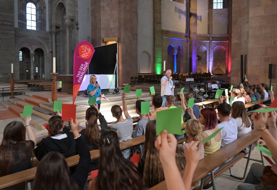 Die Firmgruppen pilgern nach Speyer, begleitet durch Impulse und Aktionen zum Mitmachen. Dafür wurden mehrere Podcasts vorbereitet. In Speyer entdecken die Jugendlichen, inspiriert durch kleine Führungen und Impulsen von Guides aus der Jugendabteilung, den Dom, treffen sich zum Gespräch mit Bischof Dr. Karl-Heinz Wiesemann und feiern einen Jugendgottesdienst mit ihm. Dieser wird von der Band „CK & friends“ gestaltet