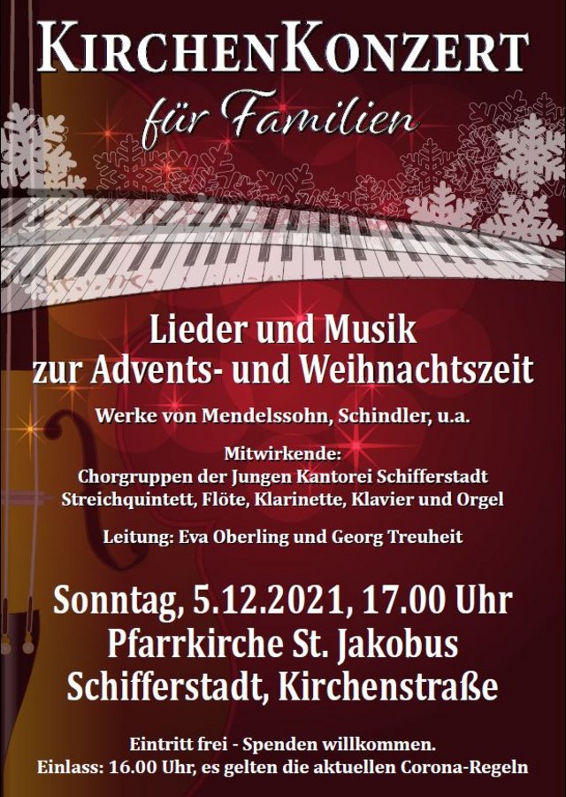 Bitte unterstützen Sie uns bei der Durchführung des Konzertes, in dem Sie die Corona-Schutzmaßnahmen mittragen und sich zum Konzert über www.pfarrei-schifferstadt.de anmelden. Hier können Sie sich auch über die vor Ort anzutreffenden Maßnahmen informieren. Bisher gelten die 3G-Regeln, die Maßnahmen werden aber den dann aktuell geltenden Vorschriften angepasst.