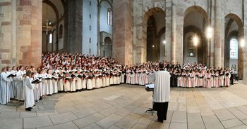 Speyer. Im Königschor des Doms zu Speyer versammelte sich am Wochenende zweimal eine große Schar junger Sängerinnen und Sänger und erfüllte den ganzen Kirchenraum mit ihrem Gesang. Von Freitag bis Sonntag waren rund 300 Kinder und Jugendliche aus Chören der Domkirchen Bamberg, Würzburg und Eichstätt nach Speyer gekommen, um zu singen, zu beten und zu feiern. Als logistischer Mittelpunkt für den Aufenthalt und die Verpflegung der Gäste diente das Haus der Kirchenmusik mit seinen großzügigen Räumlichkeiten und dem neu gestalteten Großen Chorsaal.