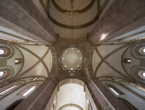 Über den Seitenschiffen des Speyerer Doms wurden erstmals in Mitteleuropa nach dem Ende des Römischen Reiches Kreuzgewölbe in monumentaler Größe errichtet. Bald kamen das weit gespannte Tonnengewölbe über dem Chor, die in eine lichte Höhe von 33 Metern reichenden Kreuzgratgewölbe im Mittelschiff, die Rippengewölbe im Querhaus und schließlich die Kuppel über der Vierung hinzu. Damit waren sämtliche Decken des riesigen Kirchenraumes als massive Gewölbedecken ausgebildet, was große Ansprüche an die Planung gestellt haben muss und jedenfalls beachtliches technisches Wissen erforderte. Laufende Forschungen beschäftigen sich mit Entwurf und Konstruktion der Gewölbe im Dom zu Speyer und untersuchen ihre Stellung in der Entwicklung des mittelalterlichen Gewölbebaus bis zu den großen Kathedralen der beginnenden Gotik.