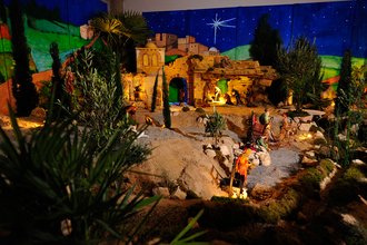 Im Dom zu Speyer, der größten noch erhaltenen romanischen Kirche der Welt, ist mit rund 20.000 Quadratmetern in den öffentlich frei zugänglichen Bereichen sehr viel Platz, so dass von drangvoller Enge allenfalls vor der Krippe im südlichen Seitenschiff gesprochen werden kann. Der Blick auf die liebevoll gestaltete Krippenlandschaft zieht vor allem Familien mit Kindern in den Dom. Besonders beliebt sind dabei die beiden Elefanten, die von der nahen Ankunft der Weisen aus dem Morgenland künden. Wasserläufe und Brunnen geben der Szene zusätzlich lebendige Bewegung. Im Zentrum steht die heilige Familie, die erst mit Jesu Geburt am 24. Dezember hier Einzug hält. Die Faszination, dass ein kleines Kind auf Stroh der Friedensfürst und Erlöser sein soll, ist den Figuren ringsum und auch so manchem großen und kleinen Besucher ins Gesicht geschrieben. Ein Flyer an der Krippe informiert in drei Sprachen über die Herkunft und Bedeutung der aus Holz geschnitzten Menschen und Tiere. Noch bis zum 2. Februar ist die Krippenlandschaft im Dom zu bestaunen.