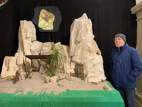 Seit etwa 10 Jahren ist etwas Abwechslung in die Krippenlandschaft an der katholischen Privatschule gekommen. „Ich wollte das Geschehen von damals in die heutige Zeit holen und etwas Moderneres gestalten“, erzählt Krippenbauer Hermann Martin. So kam ihm die Idee, das aktuelle Schulgebäude in die Szenerie zu integrieren. Als Hintergrund diente eine Front der Schule, die an eine Art Höhle erinnert; die passenden Figuren dazu wurden von einer Schulklasse angefertigt. Und so kann die Landauer Schule inzwischen auf zwei selbst gefertigte Weihnachtskrippen zurückgreifen: ein traditionelles und ein modernes Exemplar. Sie zieren mittlerweile im jährlichen Wechsel in der Vorweihnachtszeit den Eingangsbereich des Schulgebäudes und erfreuen die rund 1.100 Schülerinnen, 100 Lehrkräfte sowie Gäste der Schule. „Auch wenn sich viele ältere Semester mit meiner modernen Interpretation häufig etwas schwertun und sich dann wieder auf die traditionelle Darstellung im nächsten Jahr freuen“, berichtet Martin von seinen Erfahrungen aus den letzten Jahren.